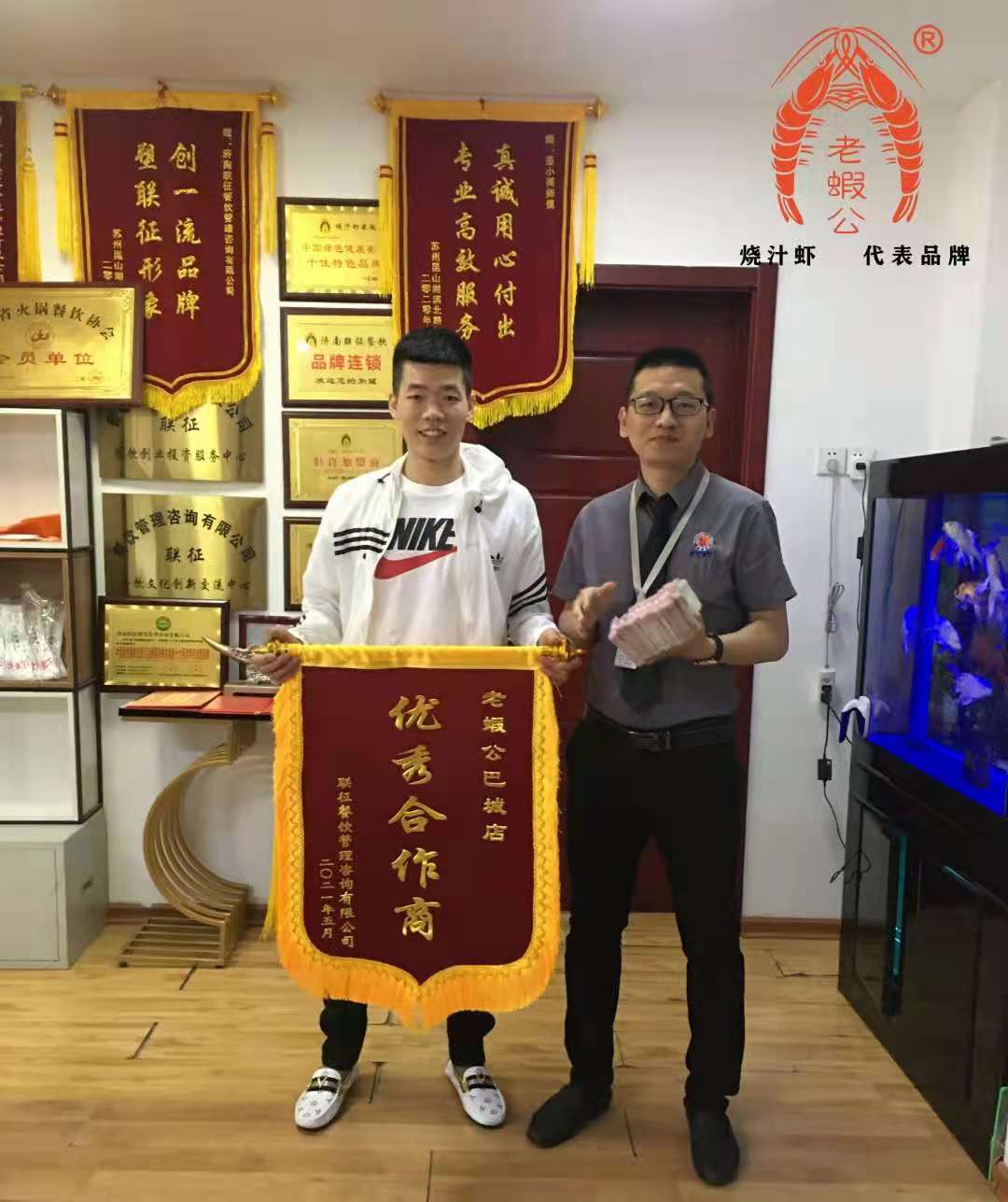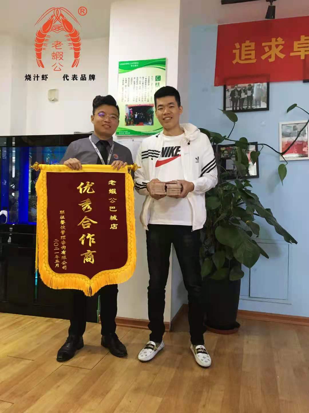 昆山代理合作商张总来公司领取本月返款 并被评为优秀合作商